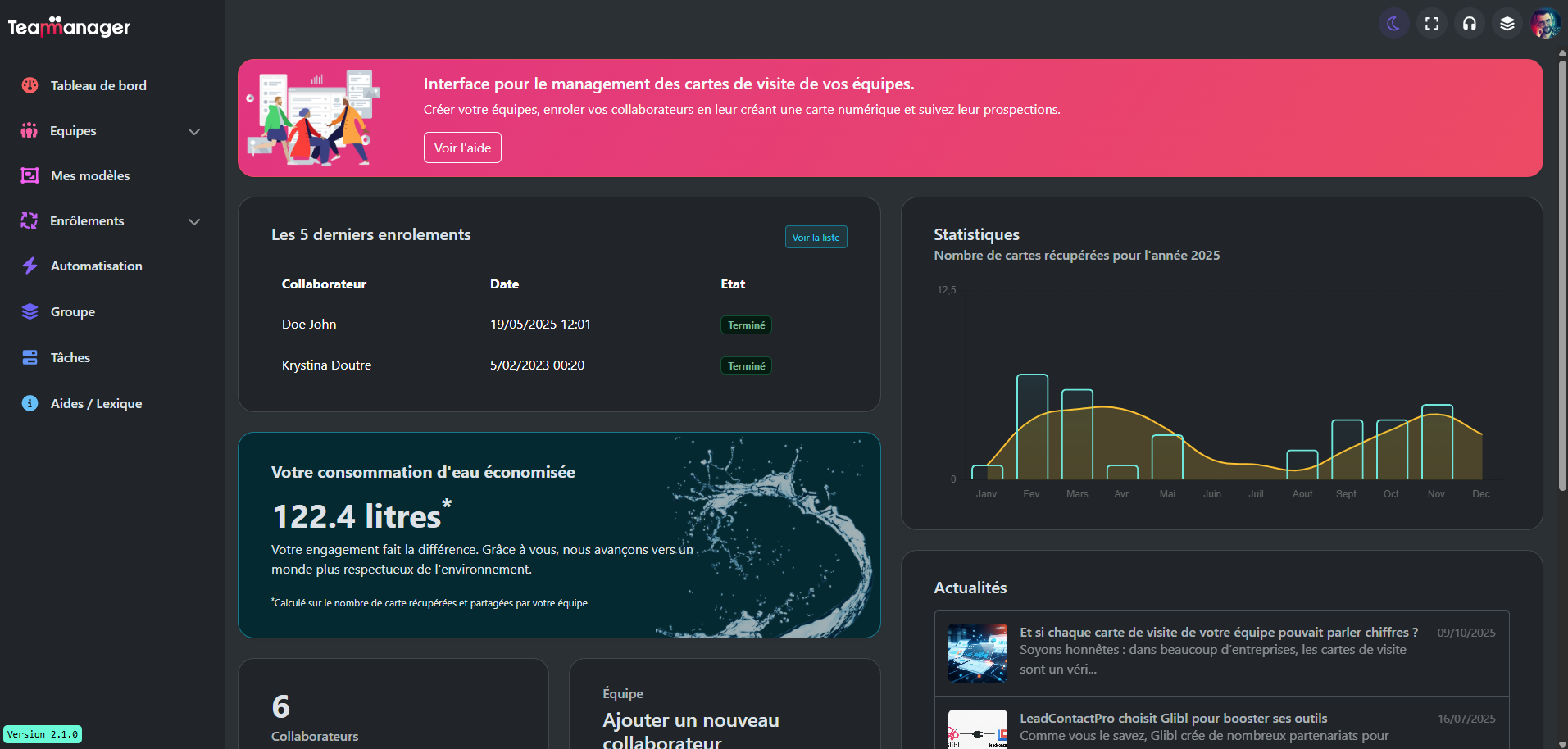 - Le site internet https://glibl.fr menu Compte > Team Manager