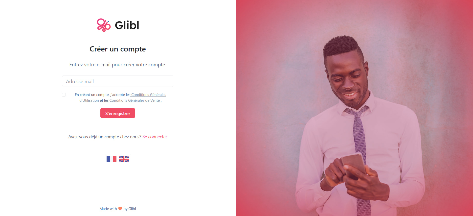 Rendez-vous sur votre navigateur à l’adresse : Créer mon compte Glibl