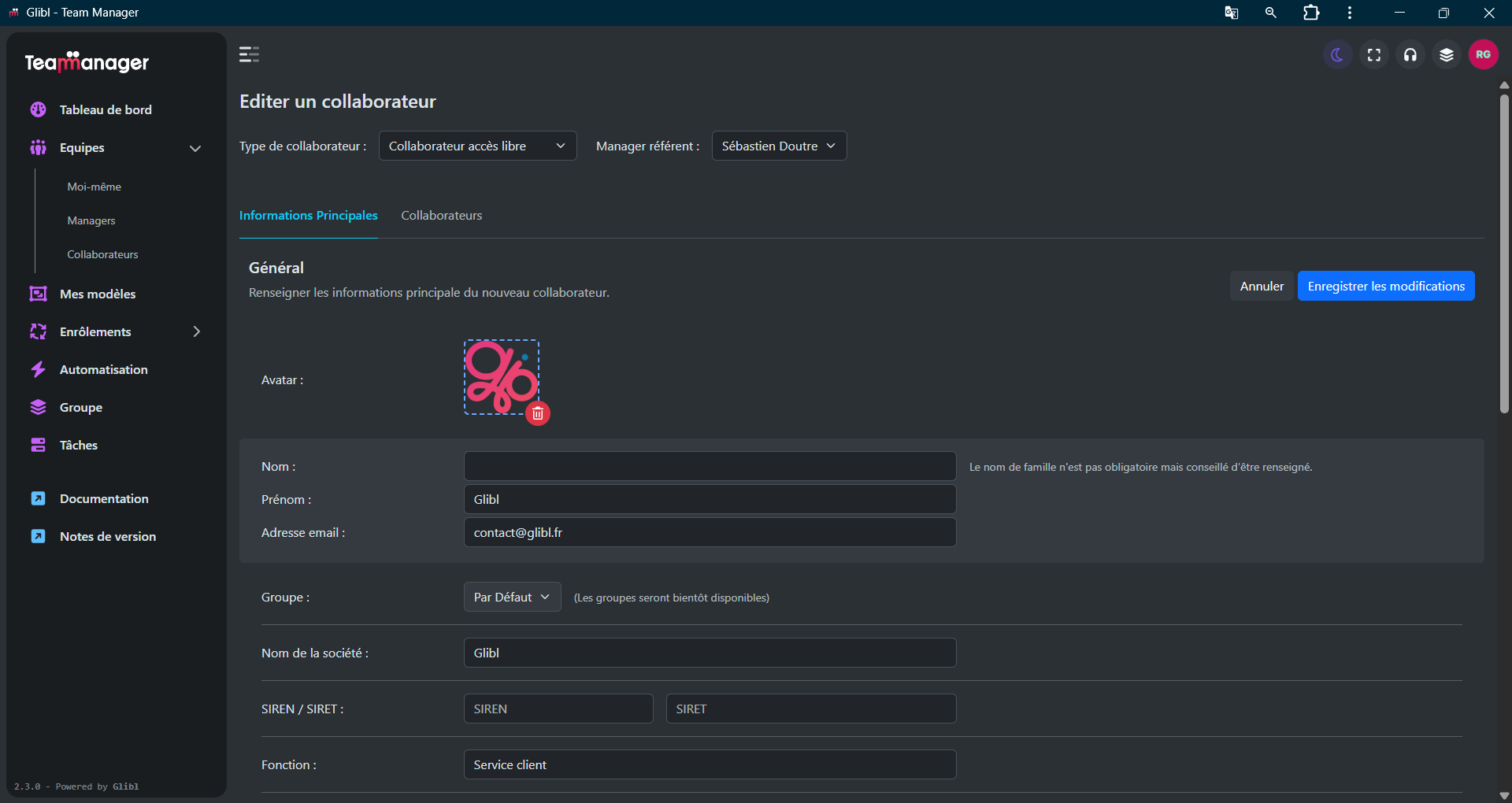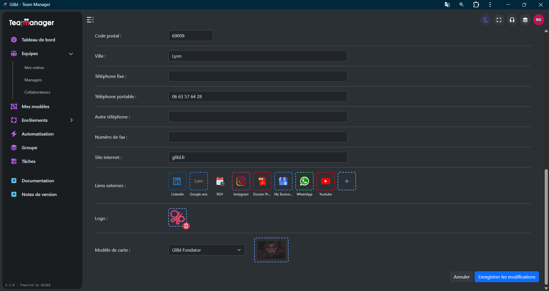 Effectuez toutes les modifications que vous souhaitez puis validez sur « Enregistrer les modification ».