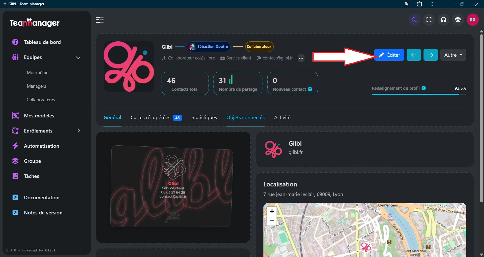 Lorsque vous avez créé la carte Glibl d’un collaborateur, vous pouvez modifier autant de fois que vous voulez les informations de sa carte.