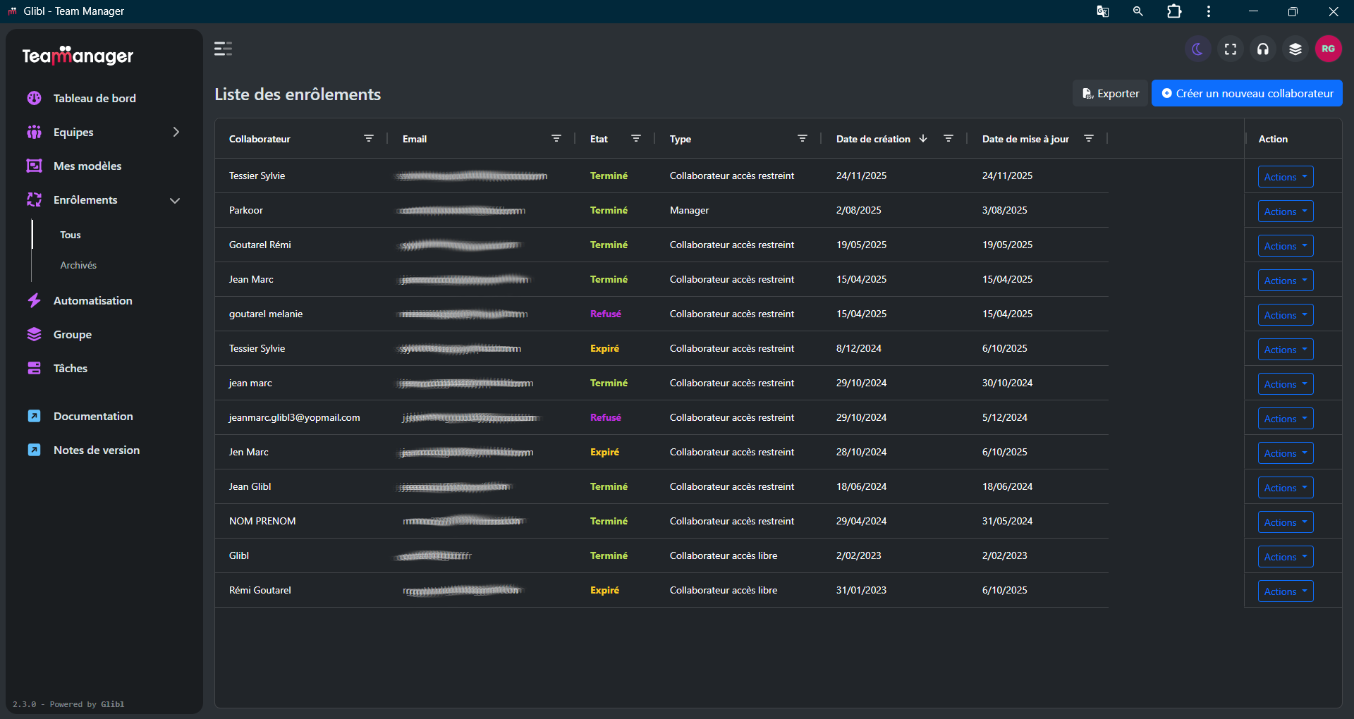 - Mon collaborateur apparaît en “Expiré”.