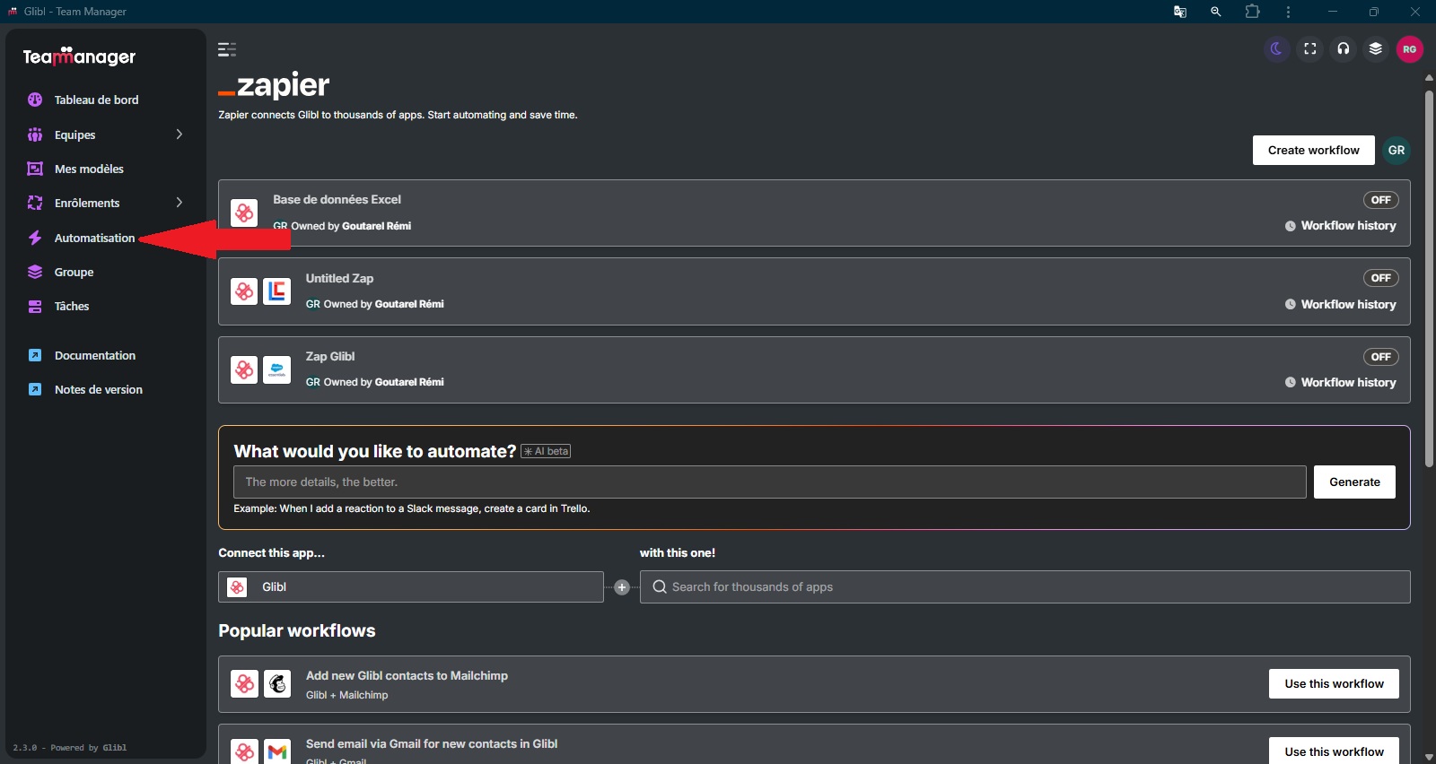 1 # : Configure l’automatisation.