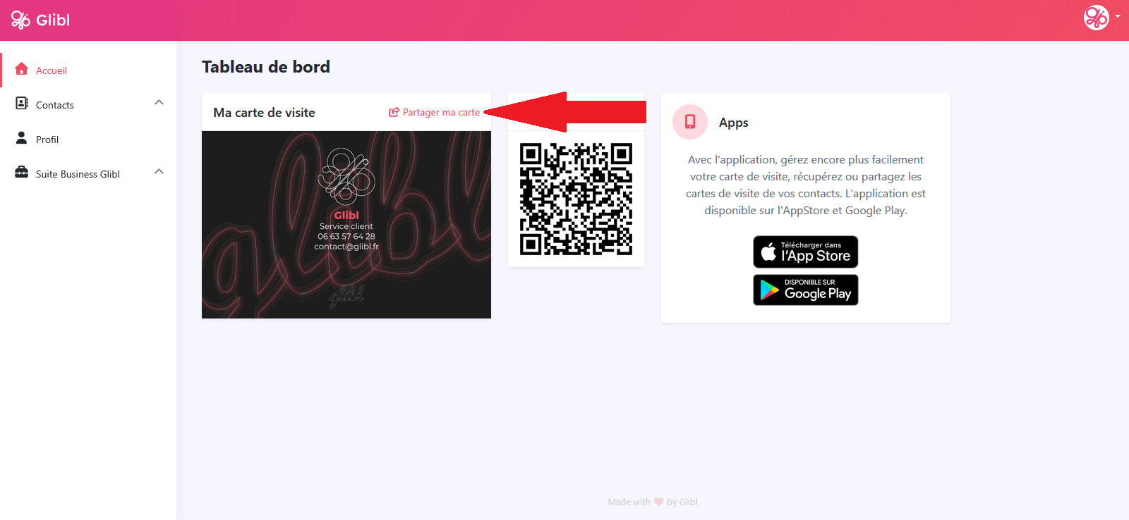 Avec Glibl, votre carte de visite est partout où vous en avez besoin.
