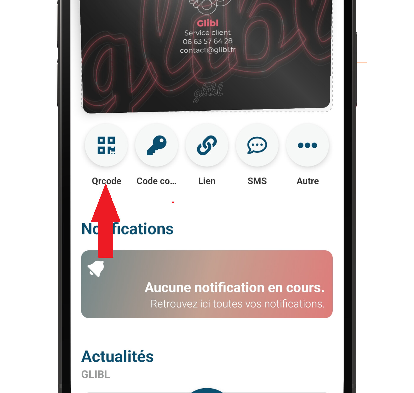 Depuis la page d’accueil de Glibl, cliquez sur « QR Code ».
